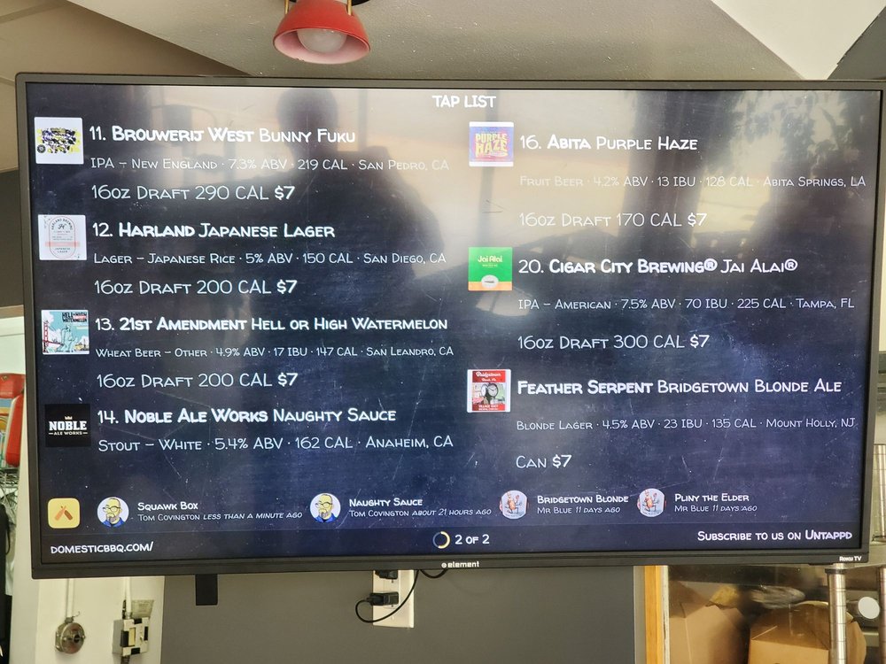 DOMESTIC is a New American, Barbeque, and Beer Bar located in La Puente, CA. Offering a range of amenities like reservations, delivery, and vegan options, this Latinx and women-owned establishment provides a casual atmosphere with options for outdoor seating and catering services. The menu boasts exceptional dishes such as brisket and sausage, which have received rave reviews from customers. The unique take on banana pudding with marshmallows and biscoff cookies, as well as the flavorful Tri Tip Fries, are must-tries. The friendly service, great ambiance, and craft beer selection make it a perfect spot for a casual meal with friends or family. With smoked meats, tasty appetizers, and a variety of drinks, DOMESTIC promises a delightful dining experience in a welcoming setting.